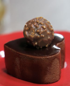 • Colocar los Marquises de chocolate congelados sobre una rejilla, y poner una bandeja abajo. Verterle el baño brillante de repostería a 35°. Decorar con Ferrero Rocher.