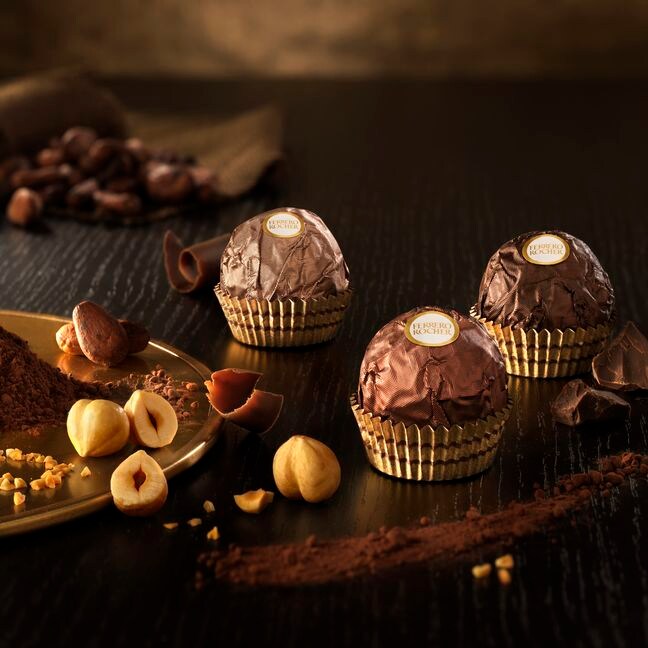 Discover the three refined recipes carefully crafted by Ferrero with quality hazelnuts, delicious creamy filling, crispy wafer and selected origins cocoa paste in the fine dark chocolate shell, to offer you a multisensorial experience inspired by dark chocolate.