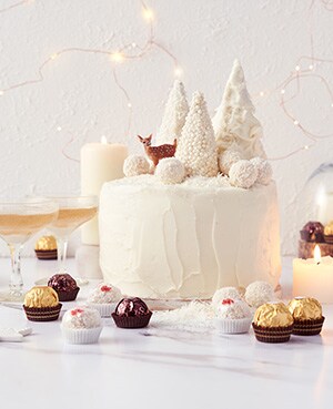 - Place snow cones on top of cake. Decorate with Raffaello.