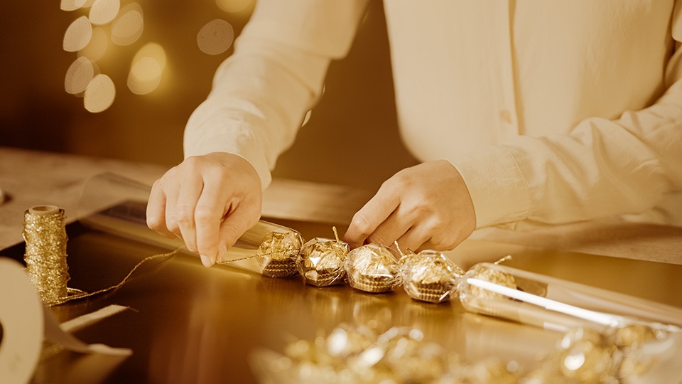 Enveloppez le cellophane bien serré autour des chocolats pour les maintenir en place. Sécuriser avec du papier collant.