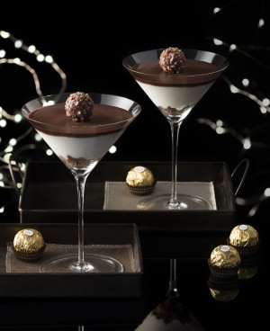 - Retirez les verres du réfrigérateur et décorez d’un Ferrero Rocher pour apporter encore plus de gourmandise!