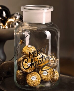 - Schilder met nagellak een kerstspreuk op de apothekerspot (bijv. ""Merry Christmas"") en laat hem drogen.