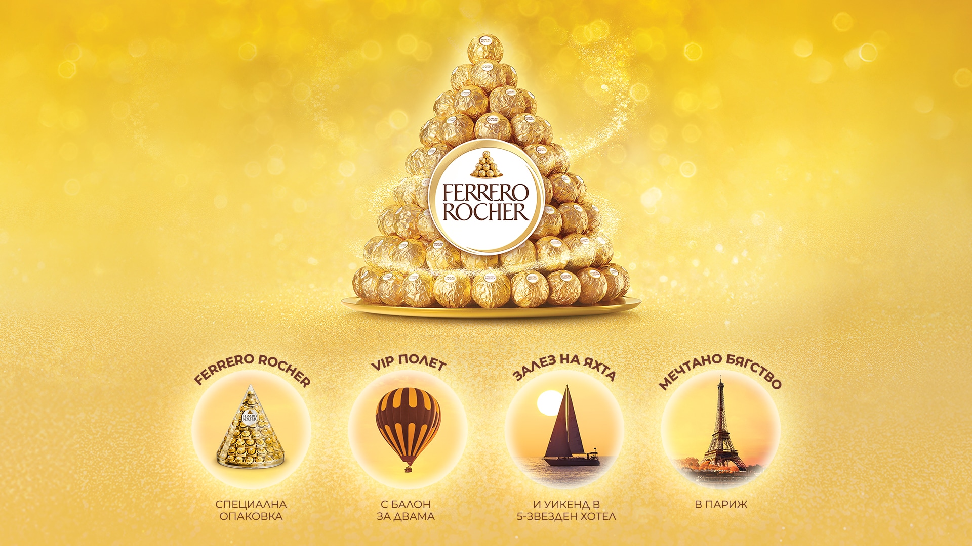 Насладете се на Ferrero Rocher между 01.10. –15.11.2025 г. и може да спечелите награда, с която да засияете.