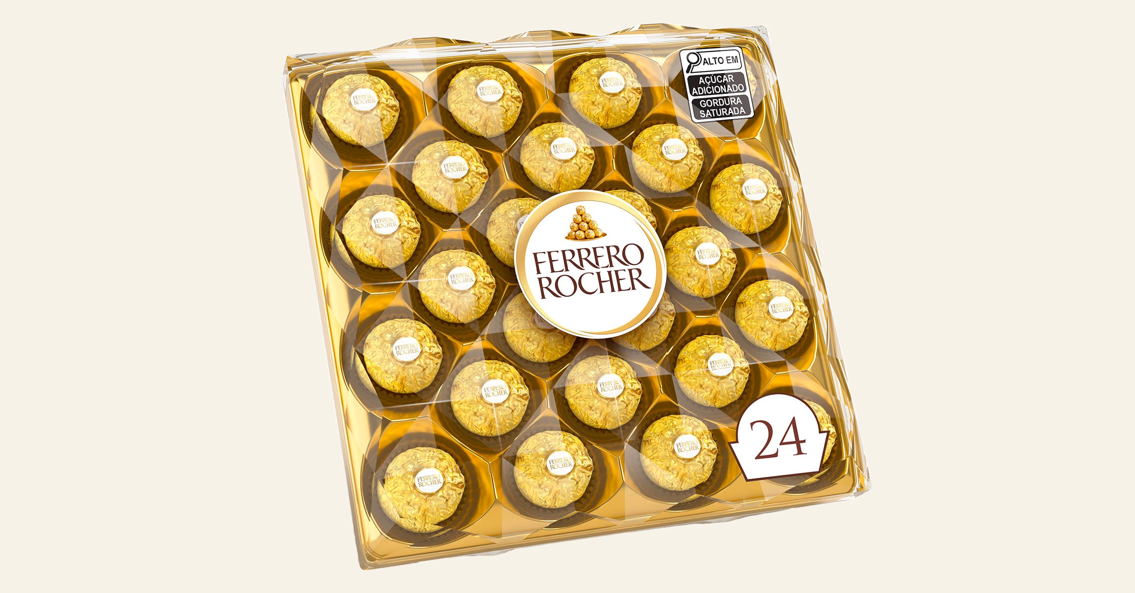 As caixas de Ferrero Rocher® com 24 unidades é feita de polipropileno (PP).