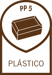 A fita plástica que veda a caixa é feita de polipropileno (PP) e PET (politereftalato de etileno).