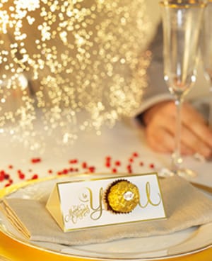 Conviez vos invités à prendre une place en or à la table grâce à ces porte-noms FERRERO ROCHER®.