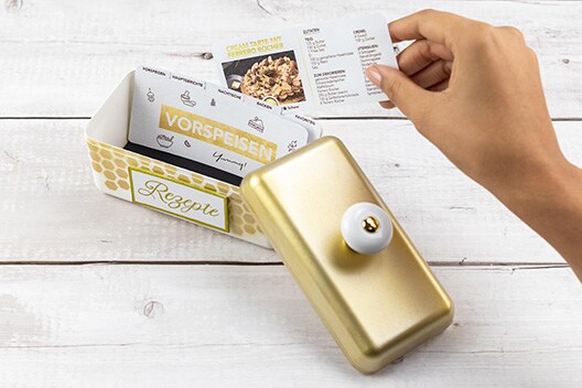 Nun platzieren Sie die Rezepte in der Box.