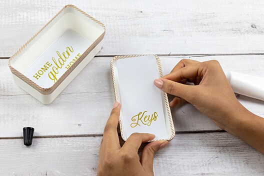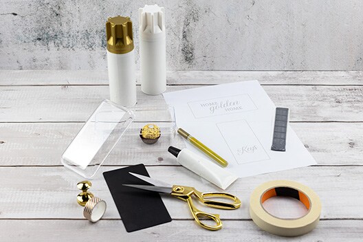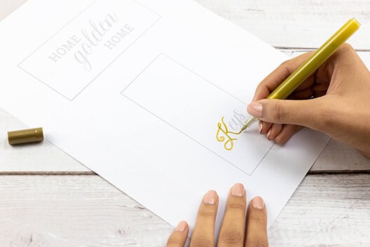 Zeichnen Sie nun die ausgedruckte "Keys"- und "Home golden Home"-Vorlage mit Hilfe eines goldenen Stiftes nach.