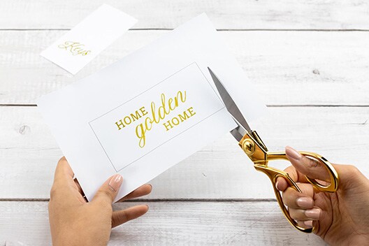 Schneiden Sie die fertigen Vorlagen der vorgedruckten Linie entlang aus.