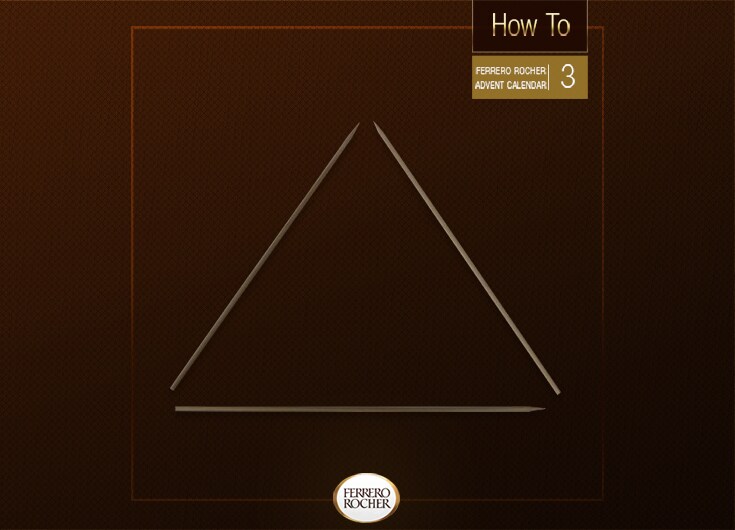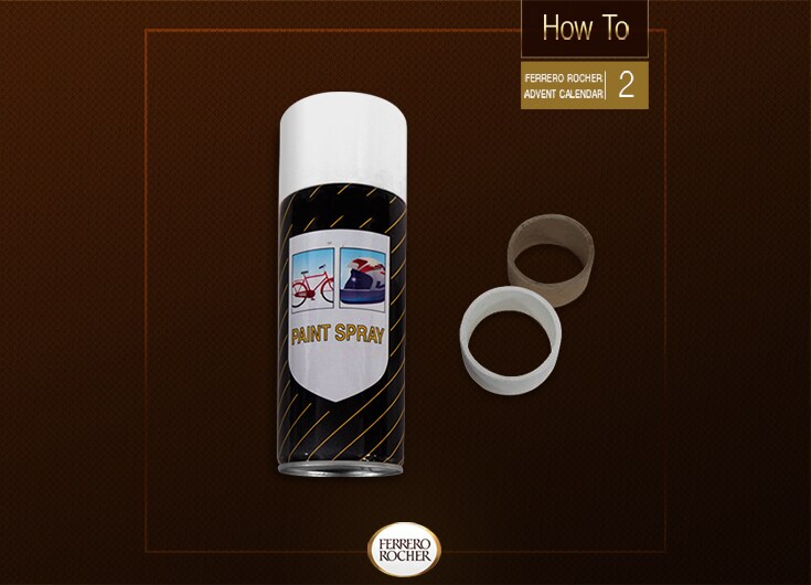 Ordnen Sie alle 24 Pappringe in dem dreieckigen Umriss an und füllen Sie sie mit Ihren kleinen Präsenten und einem Ferrero Rocher. Entfernen Sie vorsichtig das braune Papiernest von den Pralinen.