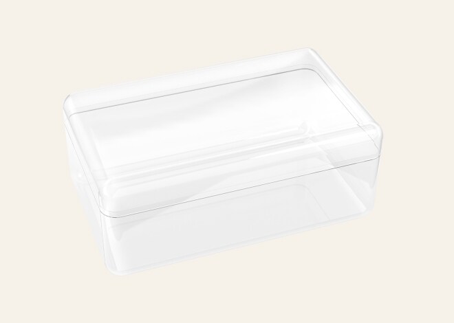 Ce nouveau matériau nous permet de réduire de 38% les émissions de carbone de notre boite de 30 bouchées et de 40% celles de notre boite de 16 bouchées et la boite 24 bouchées.