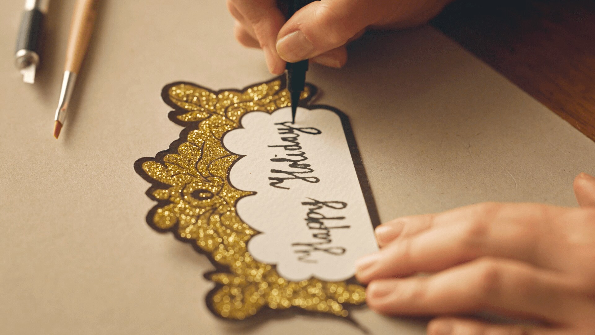 Versez des paillettes sur les zones de colle et secouez délicatement pour éliminer l’excédent de paillettes.