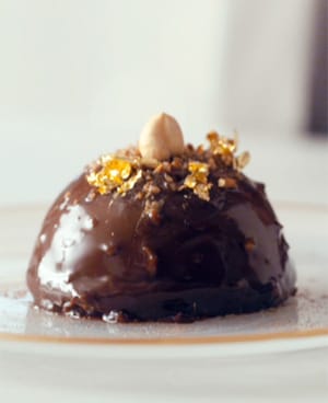 Melegítse fel óvatosan a mogyorókrémet és a csokoládét 45°C-ra, amíg fel nem olvadnak.