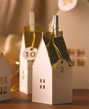 Taglia lo spago della lunghezza desiderata, inseriscilo dentro il foro applicato nel cerchio e fai un nodo. Usa la mollettina per attaccare a ogni casetta il cerchio che indica il girono dell’avvento corrispondente.
