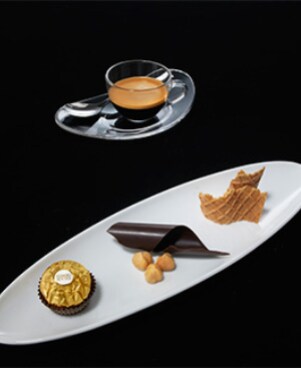 Perché non esaltare i sapori di Ferrero Rocher con una dose extra di cioccolato e una cialda? Accompagnata a un espresso, questa dolce combinazione regalerà un contrasto delizioso.