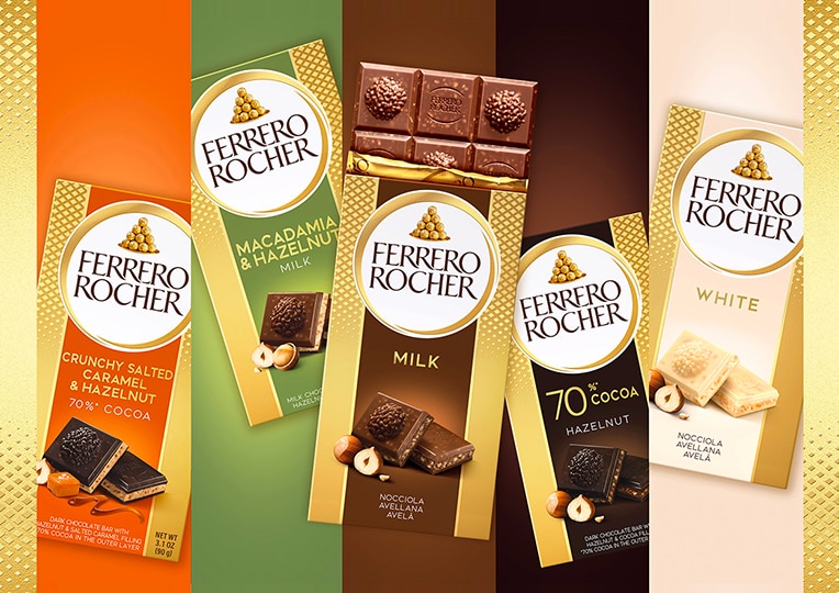 Avvolta dall’inconfondibile incarto dorato si cela una deliziosa combinazione di consistenze e sapori. Tostiamo solo le nocciole migliori, le tuffiamo in una morbida crema di cioccolato e le ricopriamo con un guscio croccante di wafer e granella di nocciola. Da sempre le specialità Ferrero Rocher rendono straordinari i nostri momenti con le persone che amiamo.