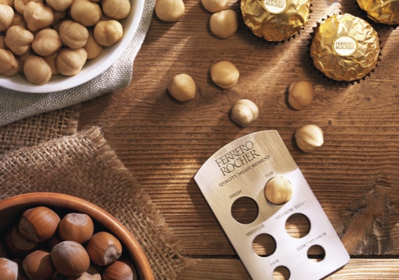他の追随を許さないフェレロ ロシェを、常に高水準で、品質とさまざまな感覚に訴える体験を一定に保つように作り上げるには、「何を」「いつ」「どこで」だけでは不十分で、「どのように」が重要です。その「どのように」を常に改善するためのフェレロの取り組みについて詳しくご紹介 <原材料セクションへのリンク>しています。