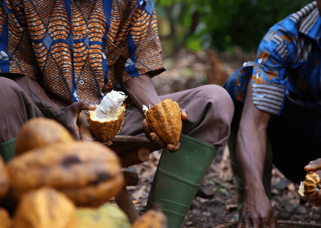 フェレロは10年以上にわたり、コートジボワールの農業協同組合であるアントルプリーズ・コーペラティブ・キンベ(ECOOKIM)と提携し、農業の改善、生産者の収入向上、地域社会の支援を行っています。このプログラムの重要な支援のひとつが、女性の地位向上へのサポートです。 ECOOKIMは、女性グループの参加を促して、苗木の育苗圃を作りました。ここではさまざまな果樹や材木用樹木の苗木を50cm~1mの高さになるまで育てています。この育苗圃は、女性に副収入をもたらすとともに、現地での農林業の能力構築や生物多様性の改善も実現しています。