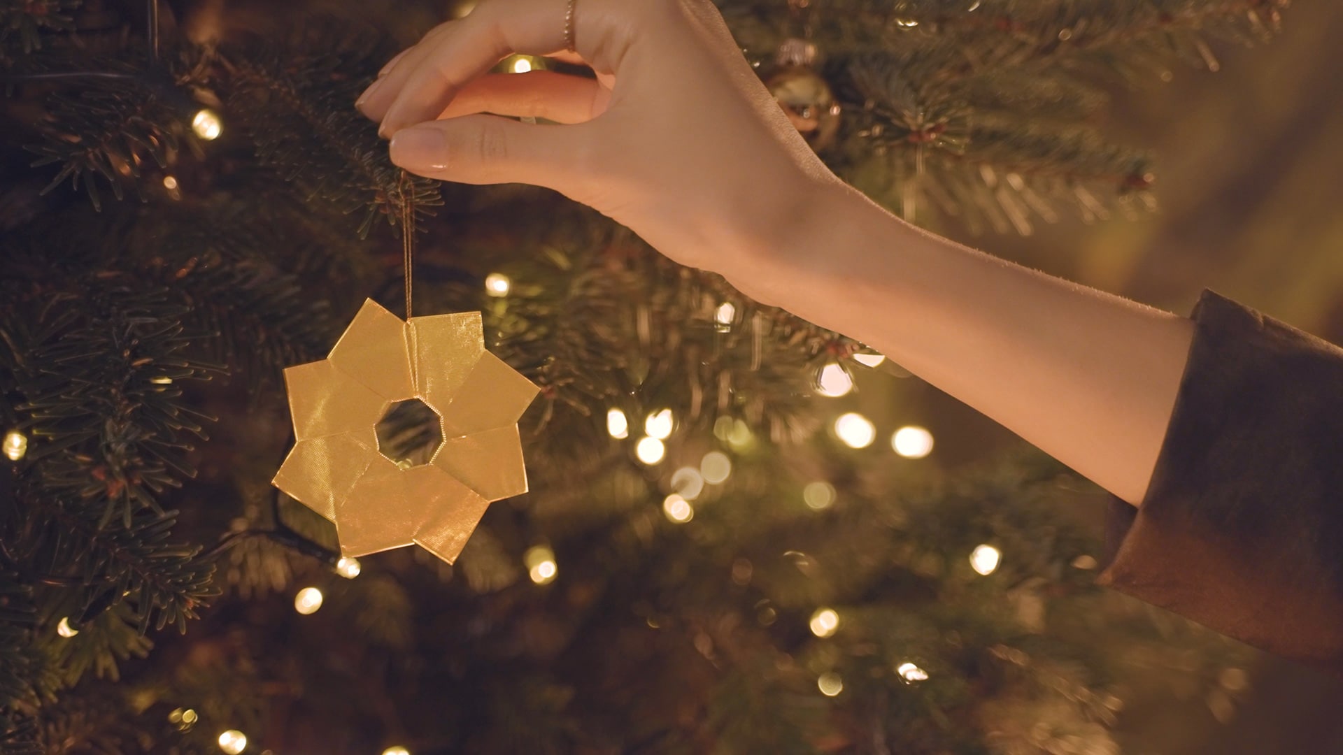 Pievienojiet auklu vai diegu, lai pakārtu savā Ziemassvētku eglē.
