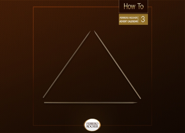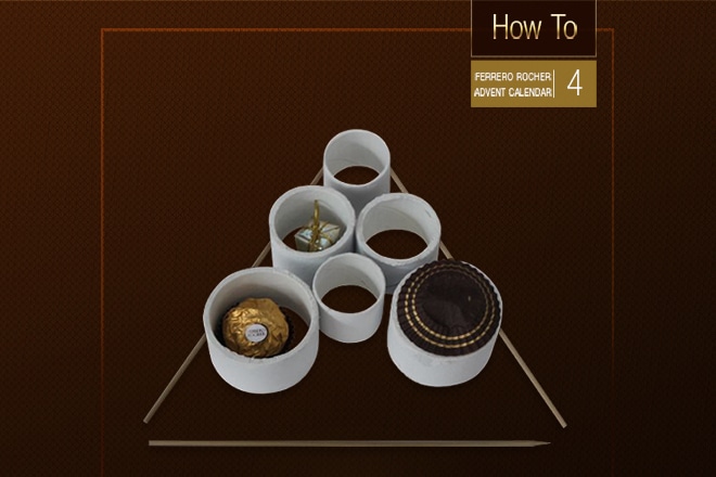 Arrange the tubes inside the triangle and place the small gifts inside. When adding the Ferrero Rocher, remove the paper cups first.