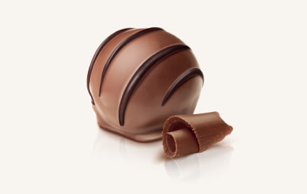Rich milk chocolate enrobes feather-light mousse in a delicate sphere, finely accented with a dark chocolate flourish.