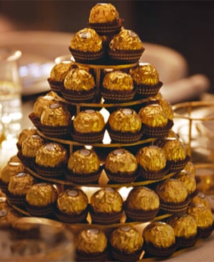 Once dry, place Ferrero Rocher pieces on each level.