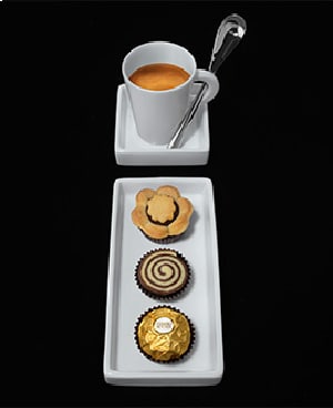 The sweet fluffiness of these cakes with Ferrero Rocher® perfectly contrast with an espresso finish.