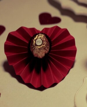 Make your Valentine's Day dinner golden with these festive DIY Ferrero Rocher pleated heart decorations. It's a quick and easy idea to help make the evening unforgettable!